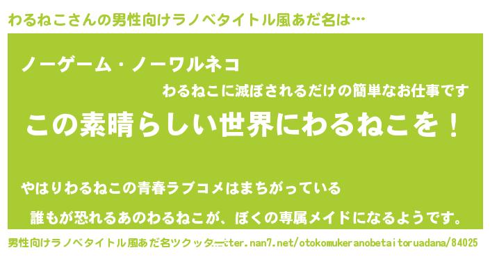 | 胡散臭い通販商品みたいなあだ名 | 『あなたにだけ特別に提供する限定10本のレアな日本酒…その名も「わるねこ」』 |