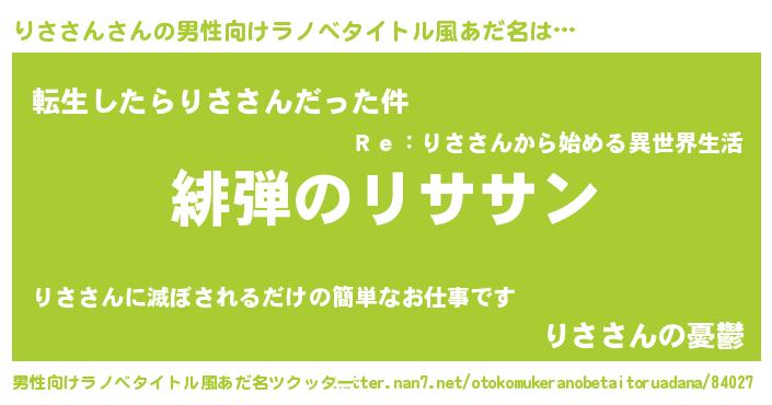 | 女子向けラノベタイトル風あだ名 | 『シンデレラりささん家の靴箱館』 |