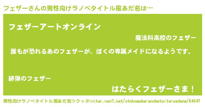 | 女子向けラノベタイトル風あだ名 | 『異世界でカフェフェザーを開店しました。』 |