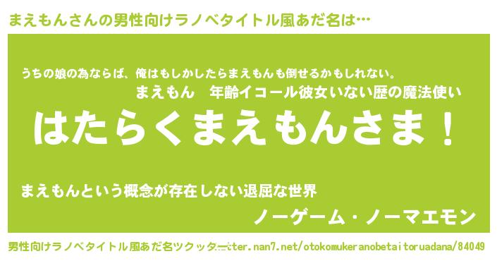 | ヘコむあだ名 | 『豆乳』『まえもん(苦笑)』『まえを』 |