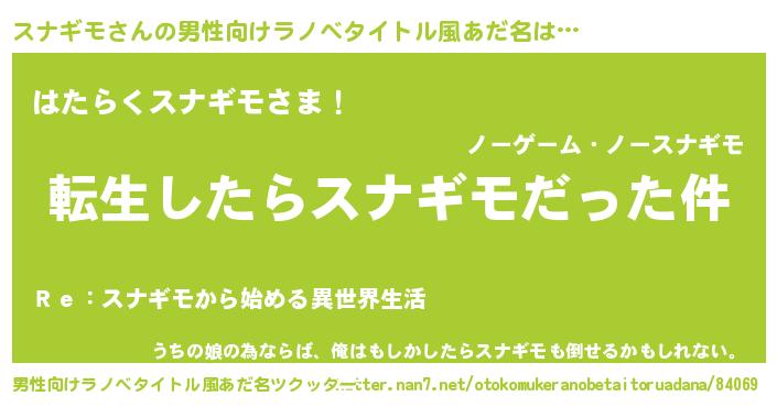 | 女子向けラノベタイトル風あだ名 | 『スナギモの玉の輿計画!』 |