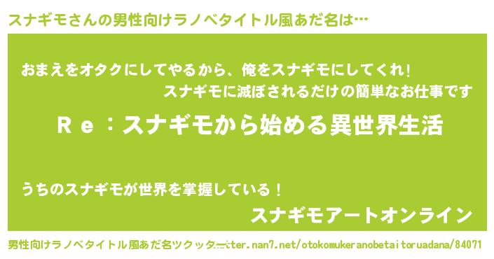 | ヘコむあだ名 | 『スナもー』『スナギモ(笑)』 |