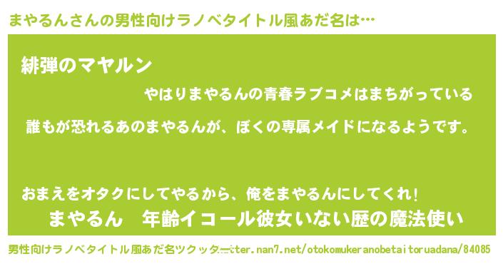 | ヒーロー風カッコイイあだ名 | 『ネオマヤルン』『ウルトラまやるんマン』 |