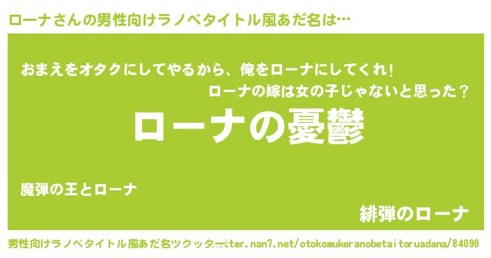 | 女子向けラノベタイトル風あだ名 | 『(仮)ローナのやんごとなき事情』 |