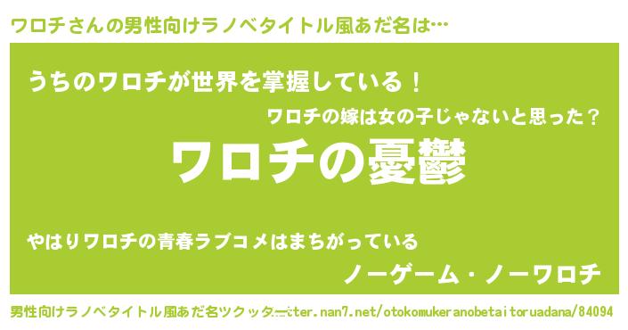 | 胡散臭い通販商品みたいなあだ名 | 『必ず成功するブレスレット…その名も「ワロチ」』 |