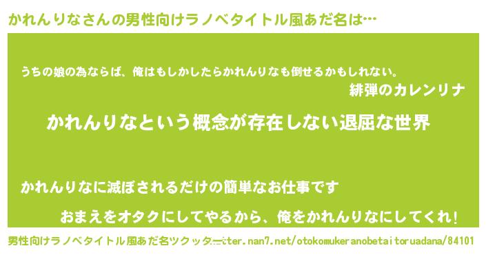 | 女子向けラノベタイトル風あだ名 | 『異世界で失敗しない100のかれんりな』 |