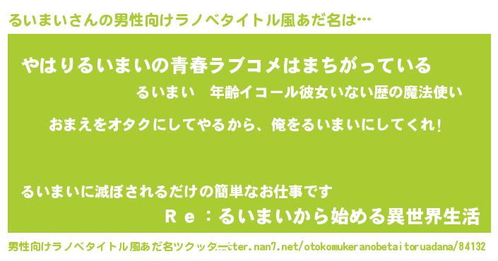 | 女子向けラノベタイトル風あだ名 | 『るいまい夫妻のなれそめ』 |