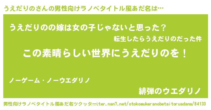 | 女子向けラノベタイトル風あだ名 | 『乙女ゲームの破滅フラグしかない悪役うえだりのに転生してしまった…』 |
