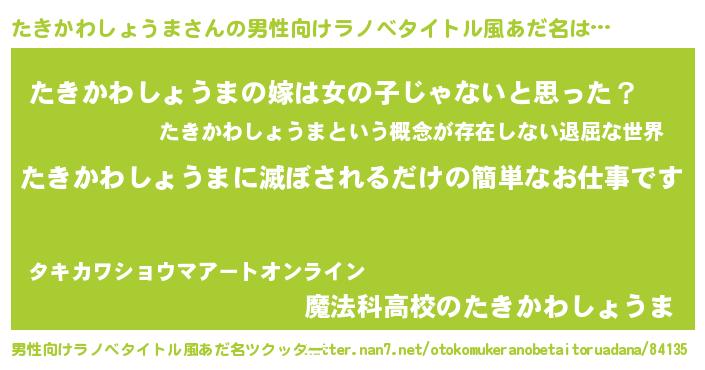 | 女子向けラノベタイトル風あだ名 | 『横柄たきかわしょうまと宰相陛下』 |