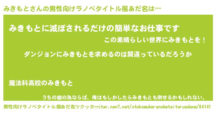 | 女子向けラノベタイトル風あだ名 | 『みきもとの卵を拾いまして』 |