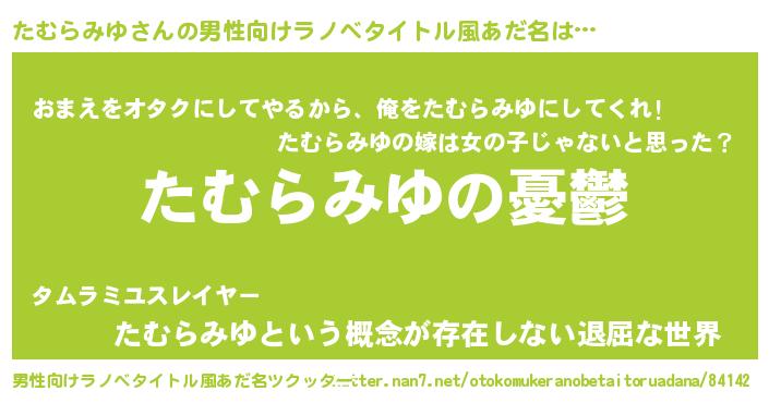 たむらみゆさんの男性向けラノベタイトル風あだ名をツクッター!