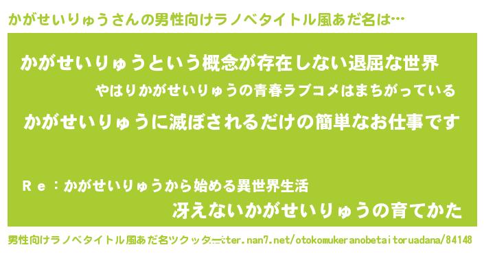 | 意味不明あだ名 | 『永久保存かがせいりゅう』 |