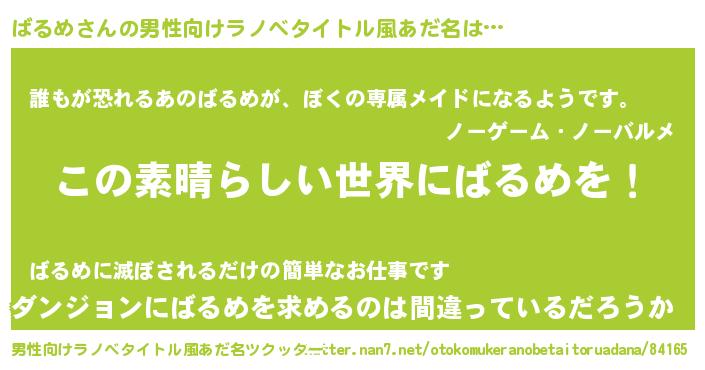 | 意味不明あだ名 | 『住所不定無職ばるめ(50歳)』『自称ばるめ』 |
