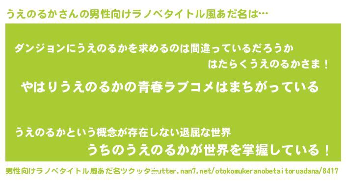 | ポケモン風あだ名 | 『ウエノダネ』『ヒウエノルカ』 |