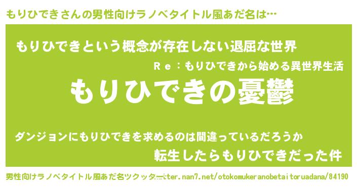 | 胡散臭い通販商品みたいなあだ名 | 『モテモテ間違いなし霊験あらたかなお札…その名も「もりひでき」』 |