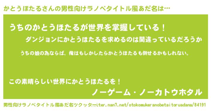 | ヒーロー風カッコイイあだ名 | 『ウルトラかとうほたるマン』 |