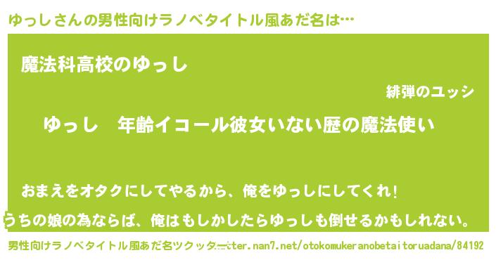 | ヒーロー風カッコイイあだ名 | 『最強戦士ユッシ』『ウルトラゆっしマン』 |