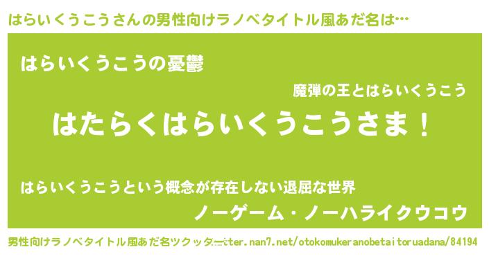 | ヒーロー風カッコイイあだ名 | 『スーパーハライクウコウ』 |
