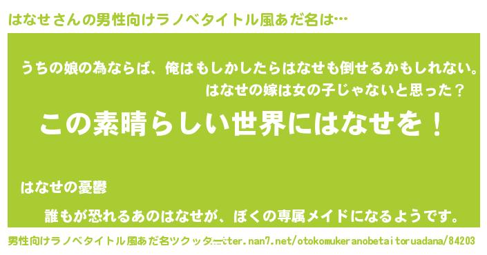 | 意味不明あだ名 | 『住所不定無職はなせ(71歳)』 |