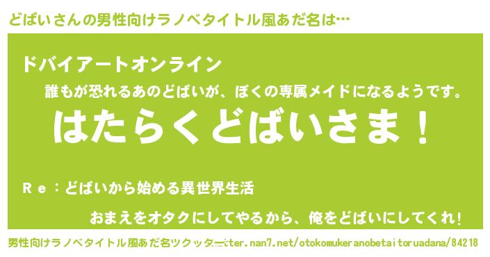 | ヒーロー風カッコイイあだ名 | 『スーパードバイ』『天空の使者どばい』 |