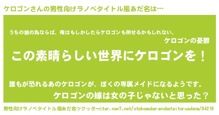 | 意味不明あだ名 | 『住所不定無職ケロゴン(12歳)』 |