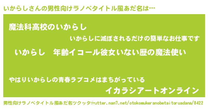 いからしさんの男性向けラノベタイトル風あだ名をツクッター!