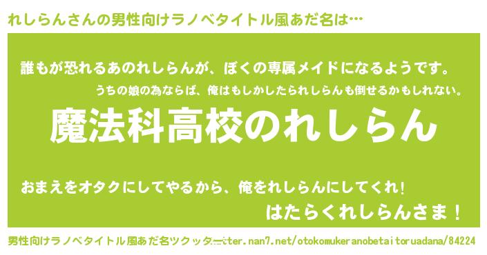 | 意味不明あだ名 | 『自称れしらん』『永久保存れしらん』 |