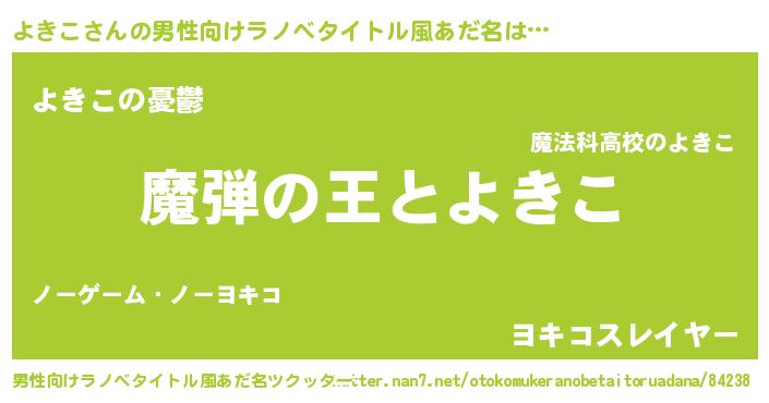 | 女子向けラノベタイトル風あだ名 | 『よきこが死なない童話 林檎のよきこの診療簿』 |