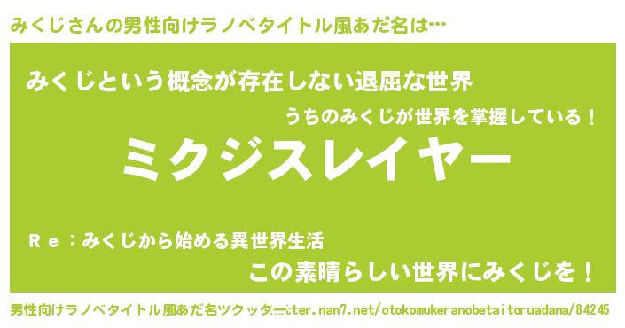 | 胡散臭い通販商品みたいなあだ名 | 『絶対に幸福をもたらす健康食品…その名も「みくじ」』 |