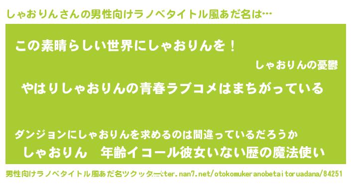 | 女子向けラノベタイトル風あだ名 | 『しゃおりんの雑貨屋さん』 |