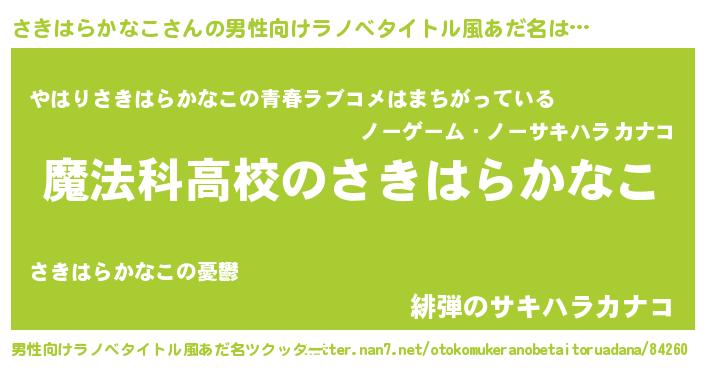 | 女子向けラノベタイトル風あだ名 | 『さきはらかなこなんてお断りですっ。』 |