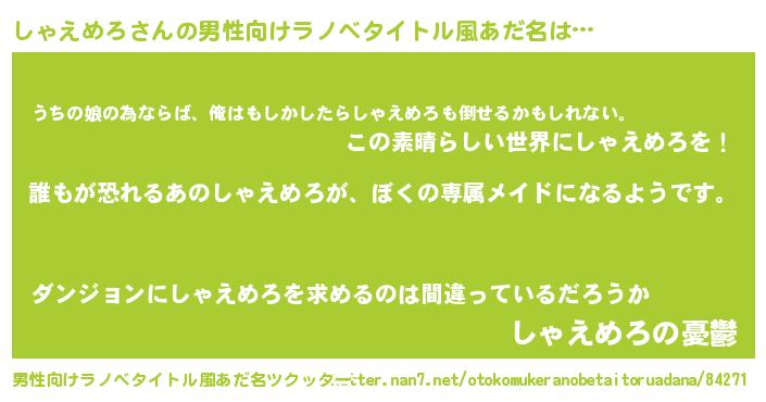 | 女子向けラノベタイトル風あだ名 | 『異世界でカフェしゃえめろを開店しました。』 |