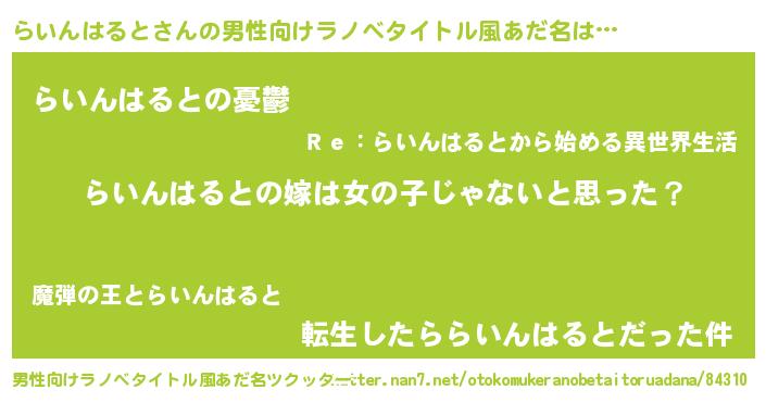 | 女子向けラノベタイトル風あだ名 | 『らいんはると様がみてる』 |