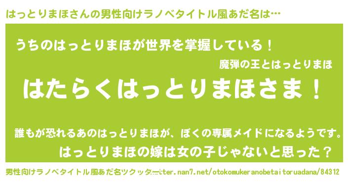 | 胡散臭い通販商品みたいなあだ名 | 『信頼と実績のペンダント…その名も「はっとりまほ」』 |