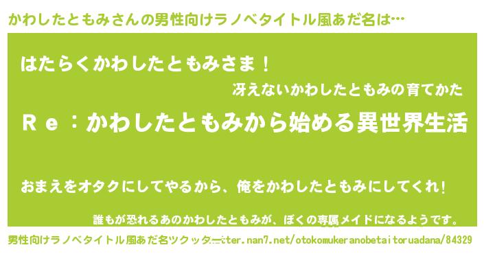 | 女子向けラノベタイトル風あだ名 | 『かわしたともみストレイドッグス』 |