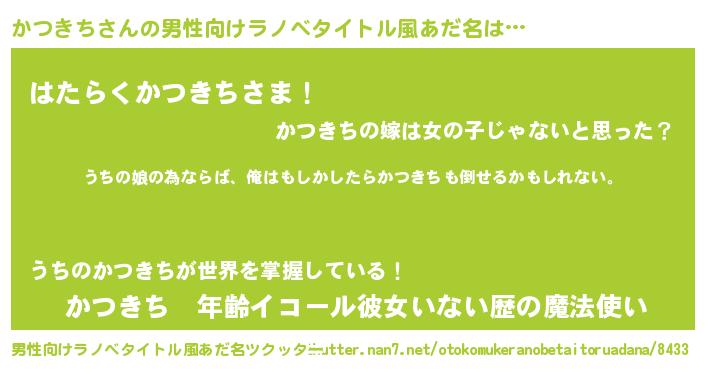 | 女子向けラノベタイトル風あだ名 | 『かつきちの婚約者』 |