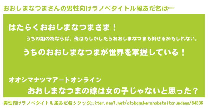 | 胡散臭い通販商品みたいなあだ名 | 『全米が絶賛したサプリメント…その名も「おおしまなつま」』 |