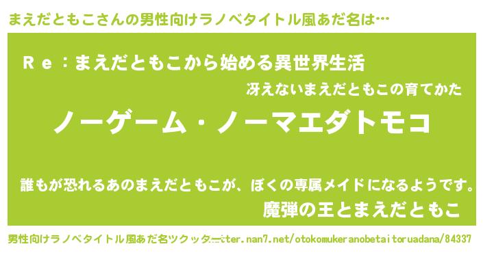 | 肩書あだ名 | 『まえだともこ教授』『まえだともこ総統』 |