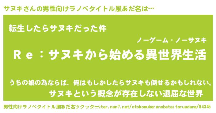 | ヘコむあだ名 | 『サヌキ(震え声)』『豆乳』『サヌを』 |