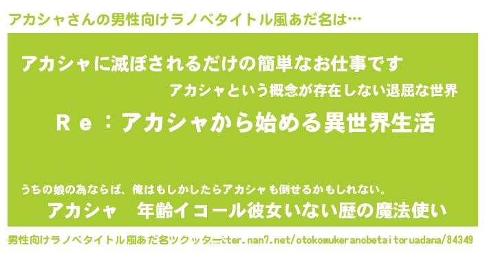 | ヘコむあだ名 | 『アカシャ(爆)』『酢こんぶ』 |