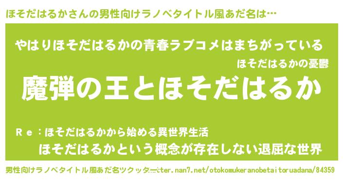 | 意味不明あだ名 | 『住所不定無職ほそだはるか(65歳)』 |