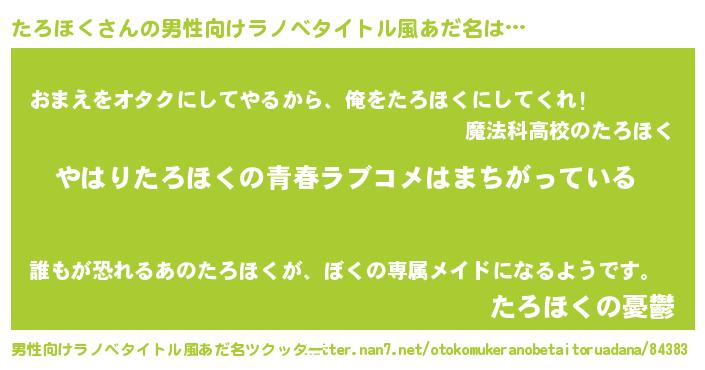 | 女子向けラノベタイトル風あだ名 | 『たろほくの雑貨屋さん』 |
