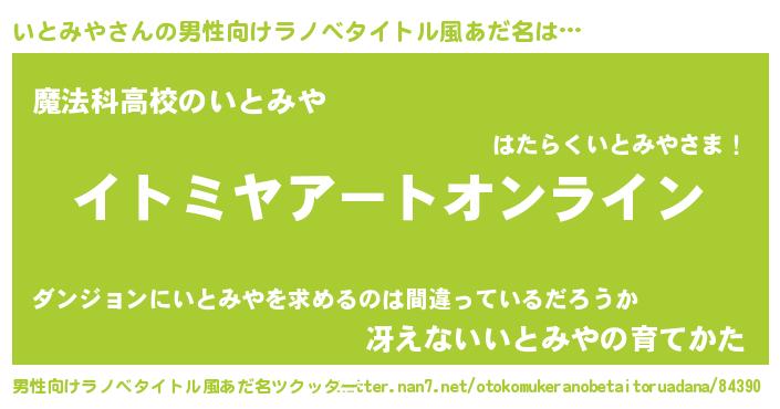 | 胡散臭い通販商品みたいなあだ名 | 『モテモテ間違いなし霊験あらたかなお札…その名も「いとみや」』 |