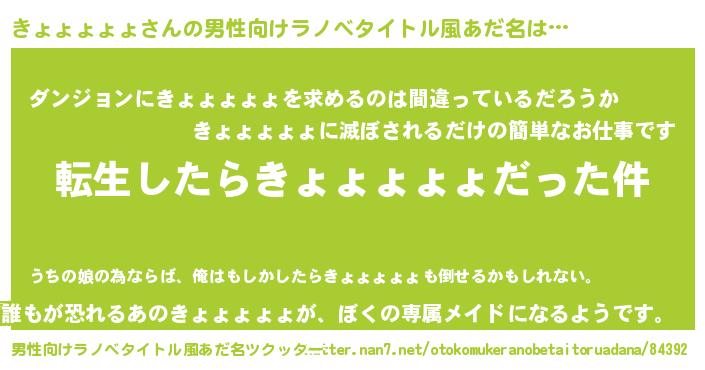 | ヘコむあだ名 | 『きょっちょ』『きょょょょょ(小並感)』 |