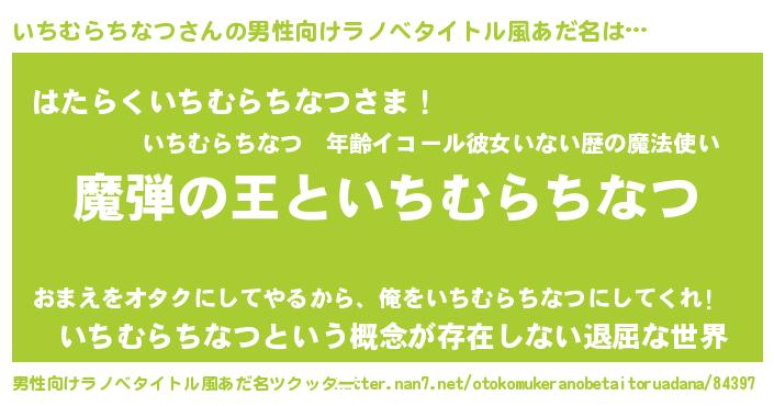 | 女子向けラノベタイトル風あだ名 | 『いちむらちなつが死なない童話 林檎のいちむらちなつの診療簿』 |