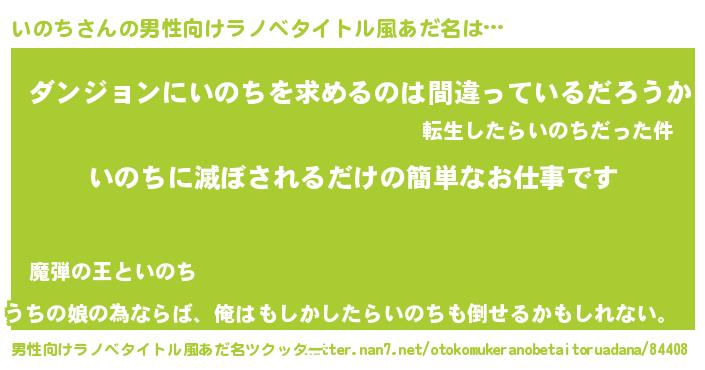 いのちさんの男性向けラノベタイトル風あだ名をツクッター!