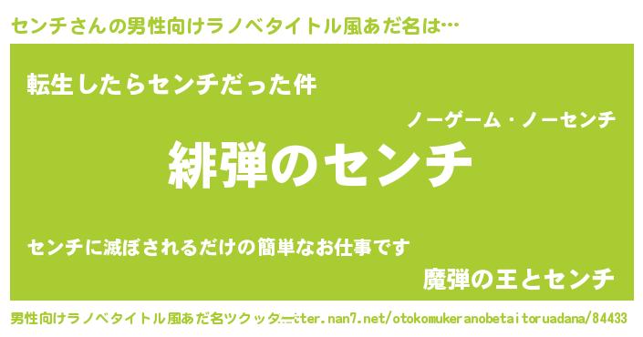 | ヘコむあだ名 | 『センチ(笑)』『豆乳』『センを』 |