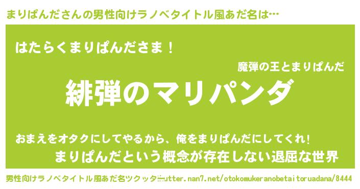 | 胡散臭い通販商品みたいなあだ名 | 『絶対に幸福をもたらす水素水…その名も「まりぱんだ」』 |