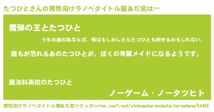 | ヒーロー風カッコイイあだ名 | 『ネオタツヒト』『仮面タツダー』 |