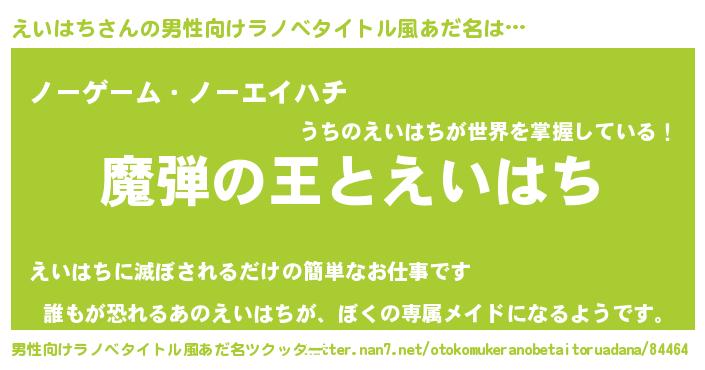 | 女子向けラノベタイトル風あだ名 | 『えいはちが死なない童話 林檎のえいはちの診療簿』 |